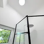 Apartment Near Central Park With Garden View erbjuder gästerna hårtorkar, badlakan och handdukar i badrummet. Du har också tillgång till en duschkabin och en separat toalett.